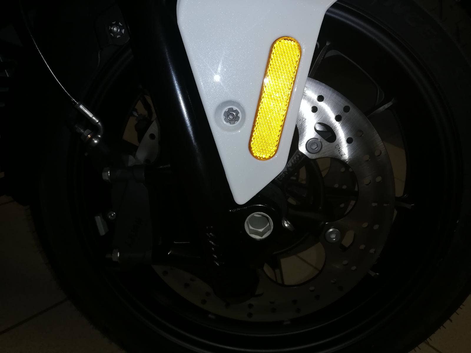 Přední brzdy 2x čtyřpístkové plovoucí třmeny J. Juan, 2x kotouč (ø 265 mm)